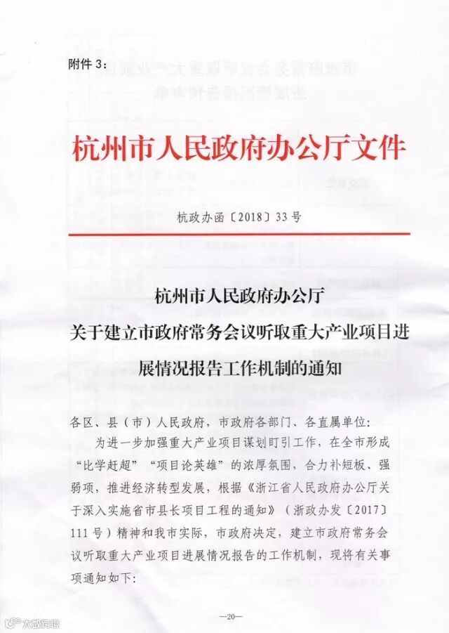 经济发展是中心,抓项目是关键,盯牢产业项目是重点。为了在全市形成“比学赶超”、“项目论英雄”的浓厚氛围,推进经济高质量发展,杭州市政府决定建立市政府常务会议听取重大产业项目进展情况报告的工作机制。