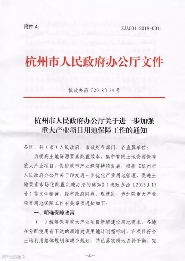 同期出台的《杭州市人民政府办公厅关于进一步加强重大产业项目用地保障工作的通知》明确,“市级统筹保障重大产业项目新增建设用地需求”,“各地在分配使用省下达的新增建设用地计划指标时,在项目符合土地利用总体规划和城乡规划,并以落实耕地占补平衡、完成农用地转用报批前期工作的情况下,在总投资50亿元以上、亩均产值达850万元/亩的重大产业项目,做到用地应保尽保;对总投资20亿元以上、亩均产值达720万元/亩的先进装备制造、汽车制造、生物医药、战略性新兴产业等项目,应予以优先保障。”