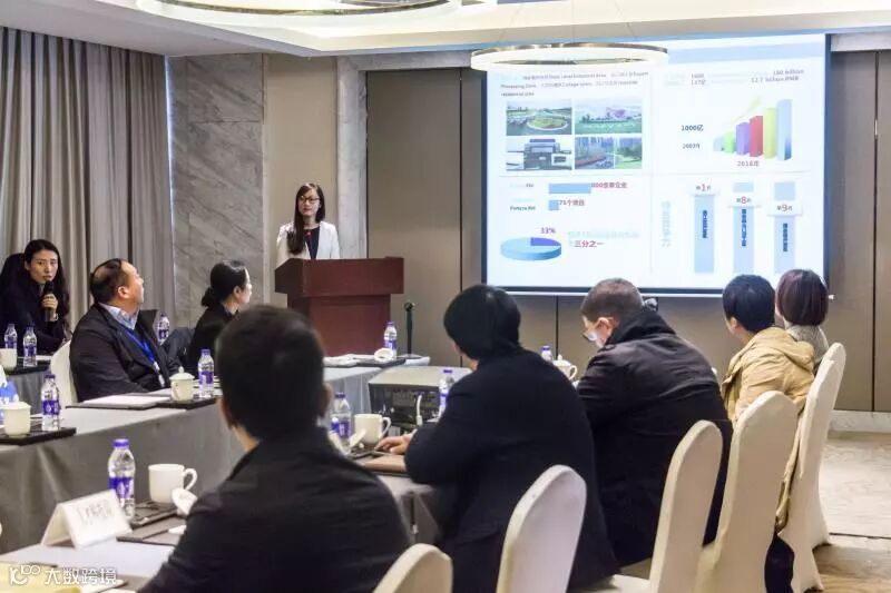 第三站 盛泰开源大酒店座谈会。商务局代表向嘉宾们介绍下沙经济技术开发区,展现区位优势,产业布局等。