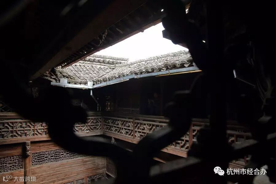 层层跌落的马头墙,半掩半映,半藏半露,黑白分明,勾出墙头与天空的轮廓线。