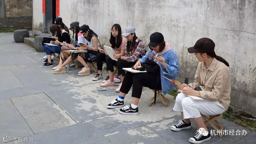 来此写生的学生不少。