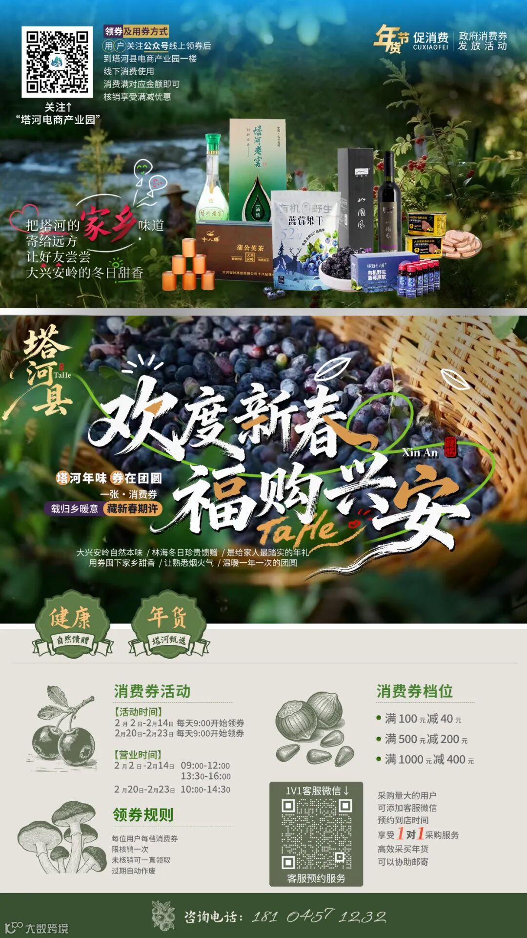 今年塔河年货节,让政府的消费心意,为您换回最踏实的滋养。用消费券,精选那些不掺假的淳朴味道——山珍作笺,年味成诗。让每一餐都充满自然的本味,让每一份礼物都承载着对长辈的敬意与对晚辈的呵护。用它们装满餐桌,就是为团圆,平添一份最坚实的幸福。