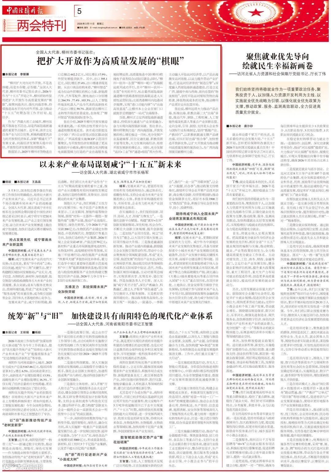 全国人大代表、柳州市委书记张壮:把扩大开放作为高质量发展的“棋眼”