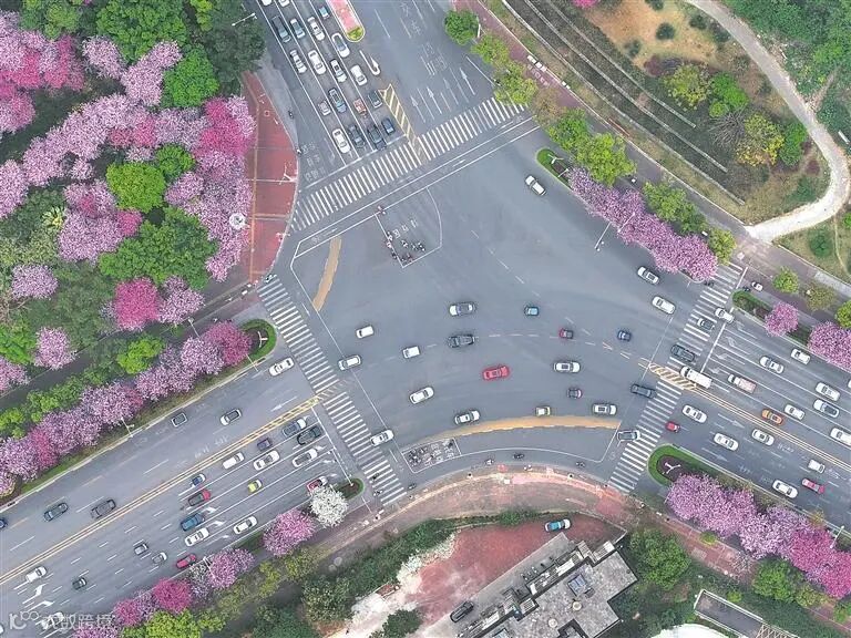 汽车行驶在广西柳州市学院路上,其中部分为柳州产的新能源汽车(4月8日摄,无人机照片)。 (新华社记者 黄孝邦 摄)