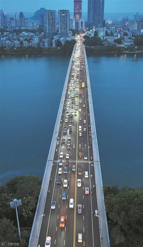 汽车行驶在广西柳州市文昌大桥上,其中部分为柳州产的新能源汽车(9月8日摄,无人机照片)。 (新华社记者 黄孝邦 摄)
