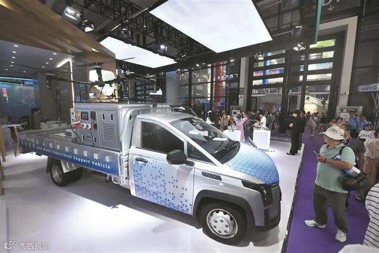 在南宁国际会展中心,观众参观一款柳州产的无人机多功能保障车(9月20日摄)。 (新华社记者 周汀鹭 摄)