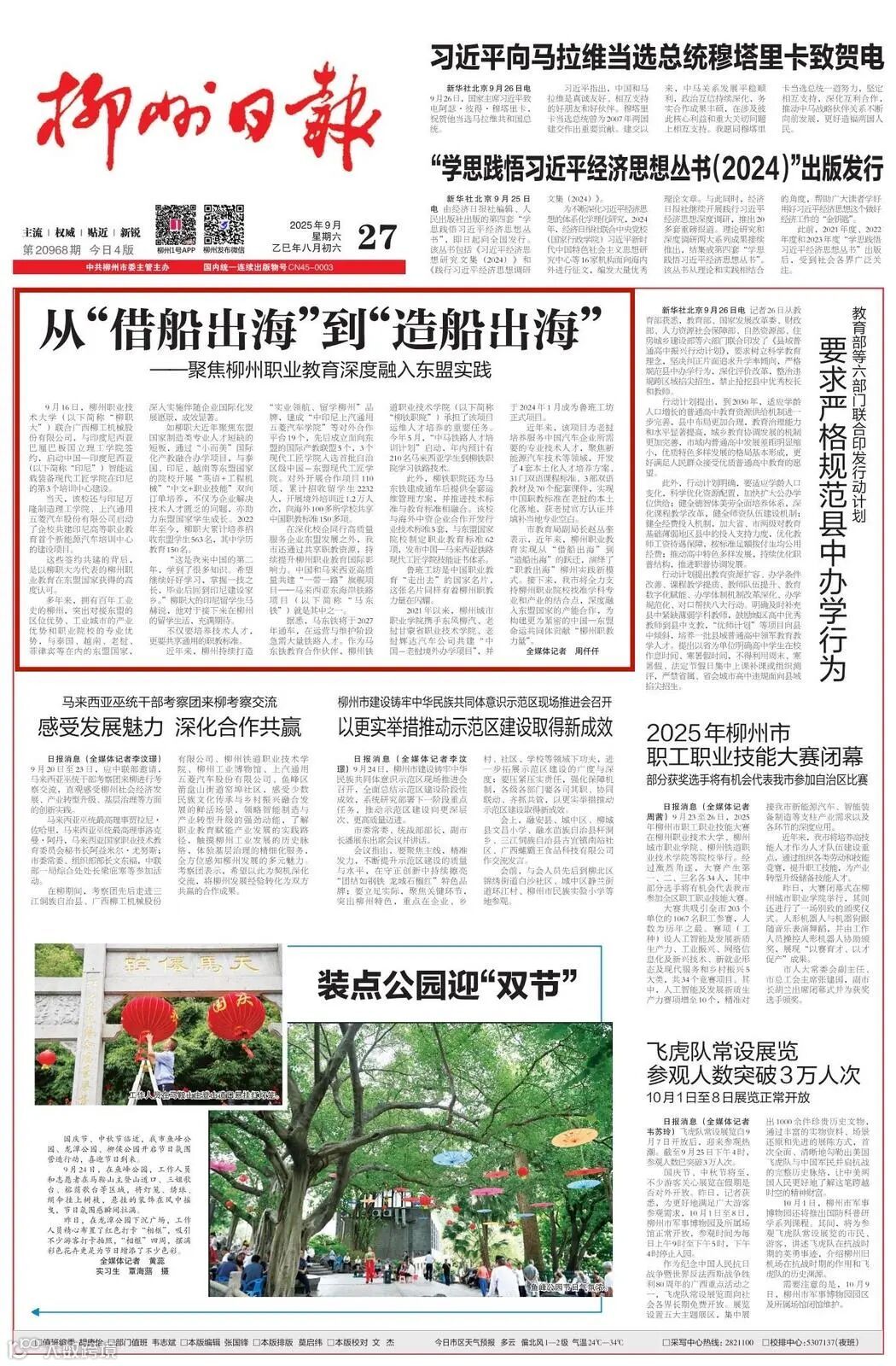 9月27日,《柳州日报》头版刊发相关报道。