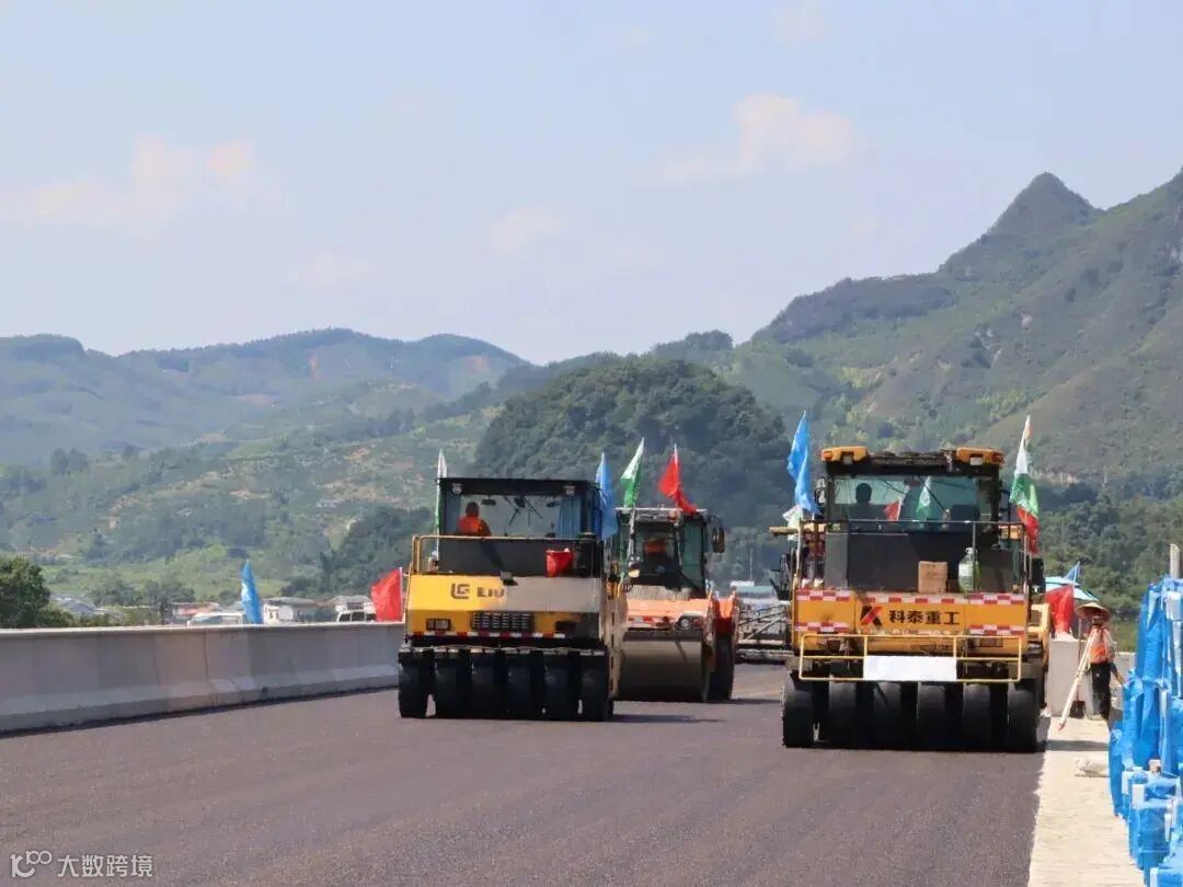 8月27日,河荔高速广西段开始进行沥青上面层实验段摊铺,标志着路面施工进入全面冲刺阶段。