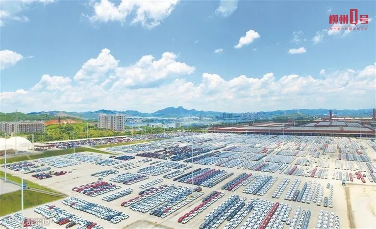上汽通用五菱宝骏基地存车场里停满即将销往全国各地的汽车。(全媒体记者 黎寒池 摄)