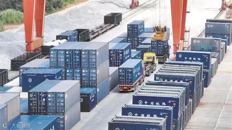 8月5日,在柳州南物流中心,众多的集装箱正在等待装运。