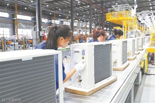 柳州轻工产业实现新突破。图为柳州津晶电器有限公司生产线上的空调外机。黎海燕/摄