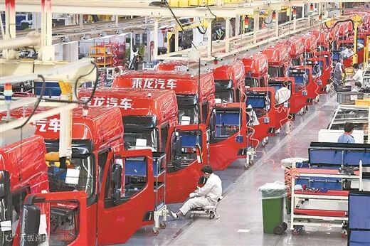 东风柳汽商用车基地整车生产车间火热的生产场景。黎寒池/摄