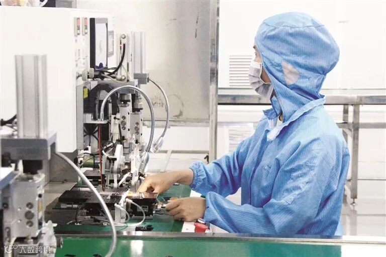 在柳州畅航光电科技有限公司的无尘车间中,工人操作仪器。