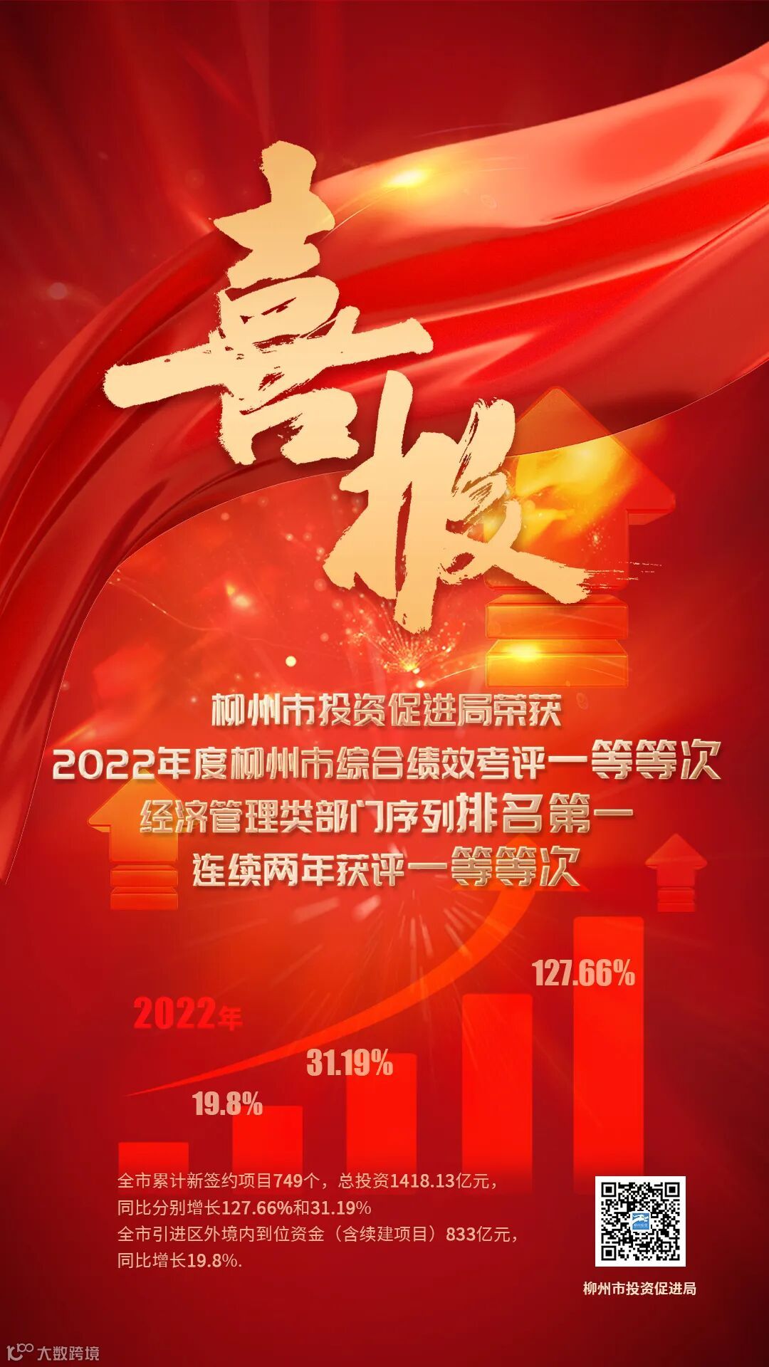 喜报!柳州市投资促进局在2022年度全市综合绩效考评中再获一等等次!