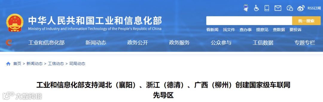 近日,工业和信息化部分别复函湖北省人民政府、浙江省人民政府、广西壮族自治区人民政府,支持湖北(襄阳)、浙江(德清)、广西(柳州)创建国家级车联网先导区。