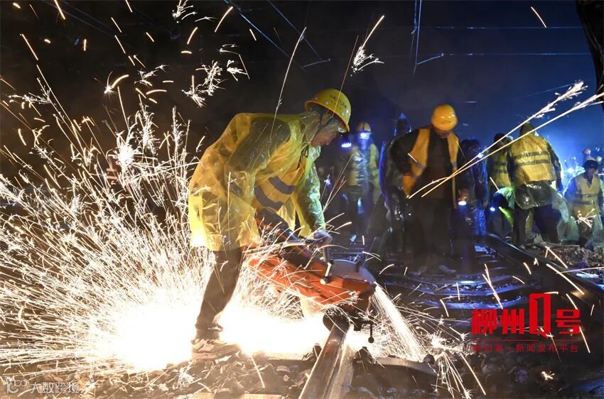 15日晚上至16日凌晨,火热的柳州西站站改施工现场
