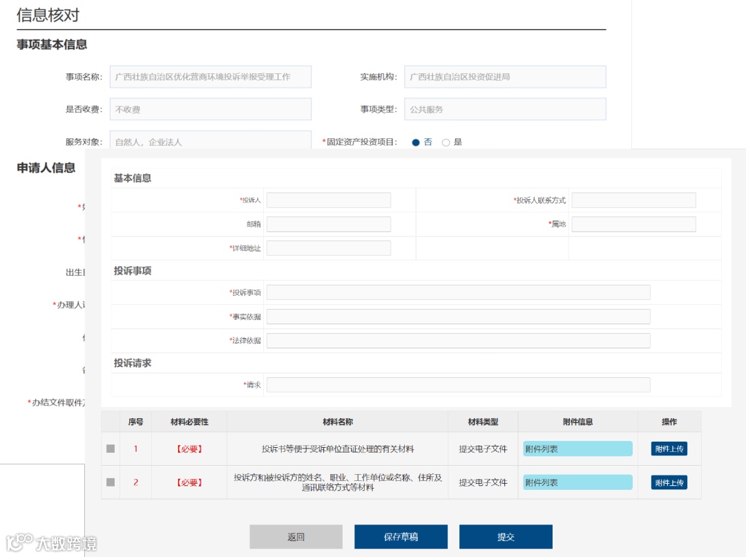 ●核对、填写信息后,点击“下一步”、“提交”按钮。提交表单。