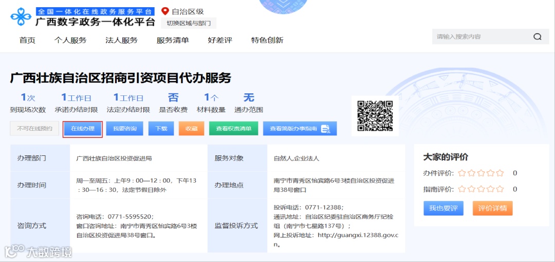 自治区政务服务中心投资促进局窗口,联系电话:0771—5595520