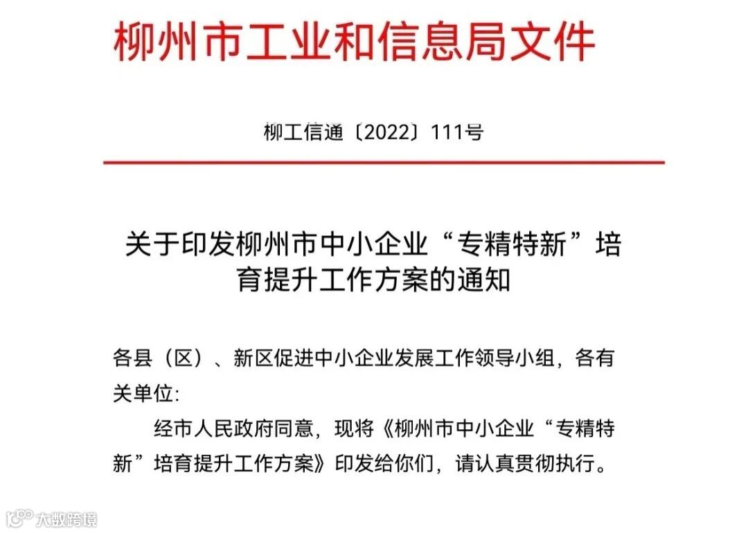 为了推进柳州市中小企业“专精特新”工作,出台工作方案。