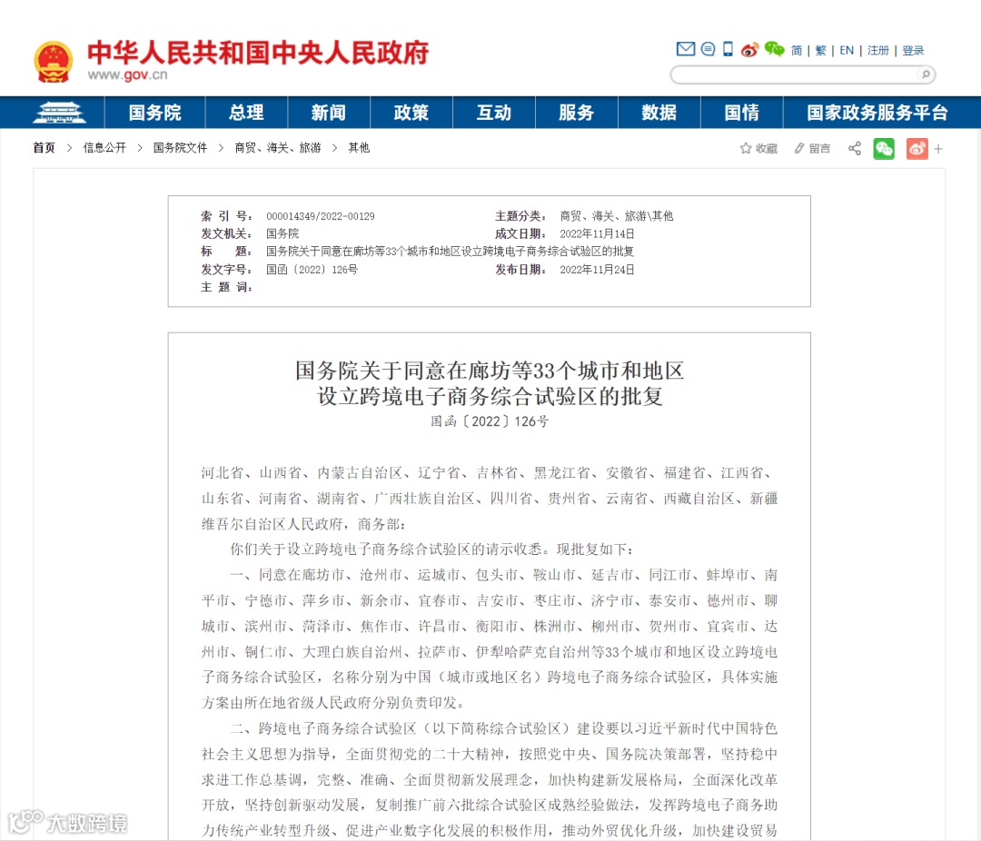 批复提到,跨境电子商务综合试验区(以下简称综合试验区)建设要坚持创新驱动发展,复制推广前六批综合试验区成熟经验做法,发挥跨境电子商务助力传统产业转型升级、促进产业数字化发展的积极作用,推动外贸优化升级,为各类市场主体公平参与市场竞争创造良好营商环境。