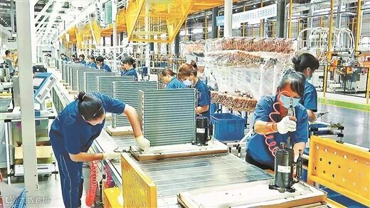 柳州津晶电器空调生产车间。兰德波/摄