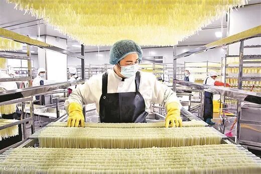 柳州螺蛳粉企业的工人在整理米粉。李家树/摄
