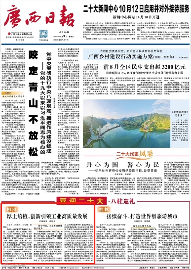 党的十八大以来,在习近平新时代中国特色社会主义思想的指引下,我区各地各部门踔厉奋发、攻坚克难,不断取得新的进步,不断创造新的辉煌。为了全方位、多层次展示我区十年来各地经济社会发展和改革创新取得的辉煌成就与宝贵经验,激励广大干部群众在新时代新征程上取得更大胜利和进步,即日起,广西日报在“喜迎二十大”主专栏开设子栏目“八桂巡礼”,全面反映新时代我区各地各项事业取得的历史性成就、发生的历史性变革。敬请垂注。