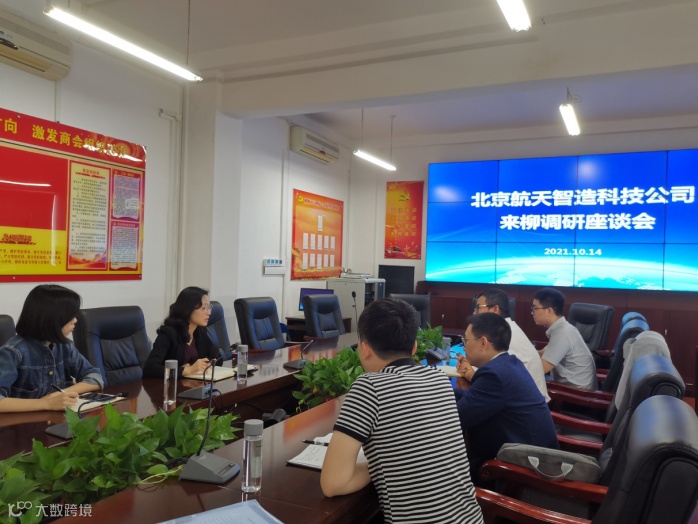 航天智造科技发展有限公司市场部李军涛总监一行3人来柳考察,并与市投资促进局开展座谈。双方就工业互联网平台、工业大数据中心、产教融合的现状,以及未来的建设规划进行深入交流,共同探讨项目合作机会。