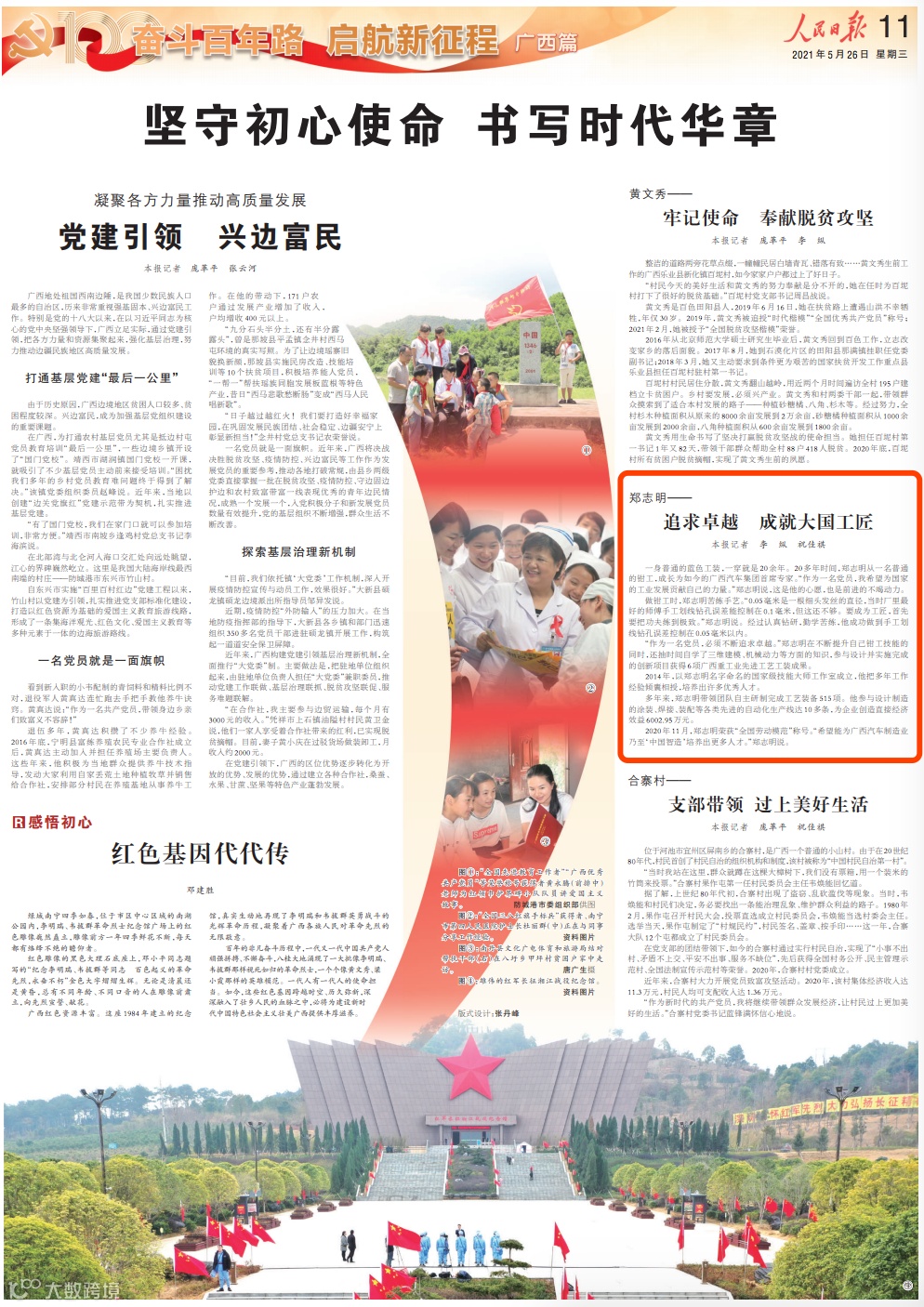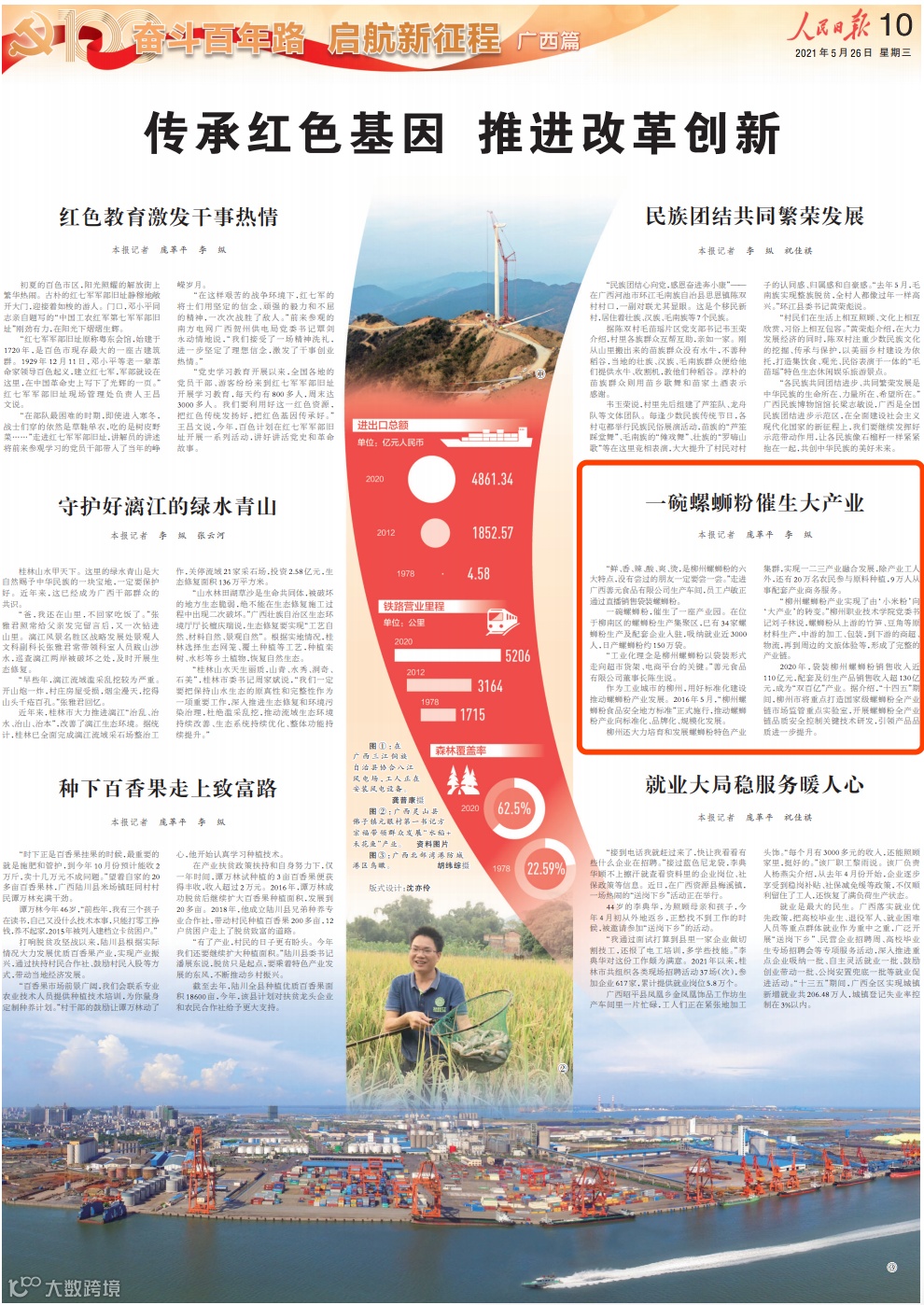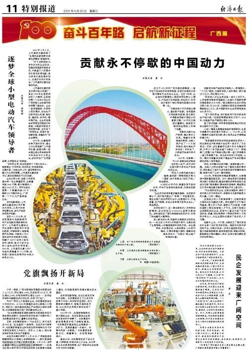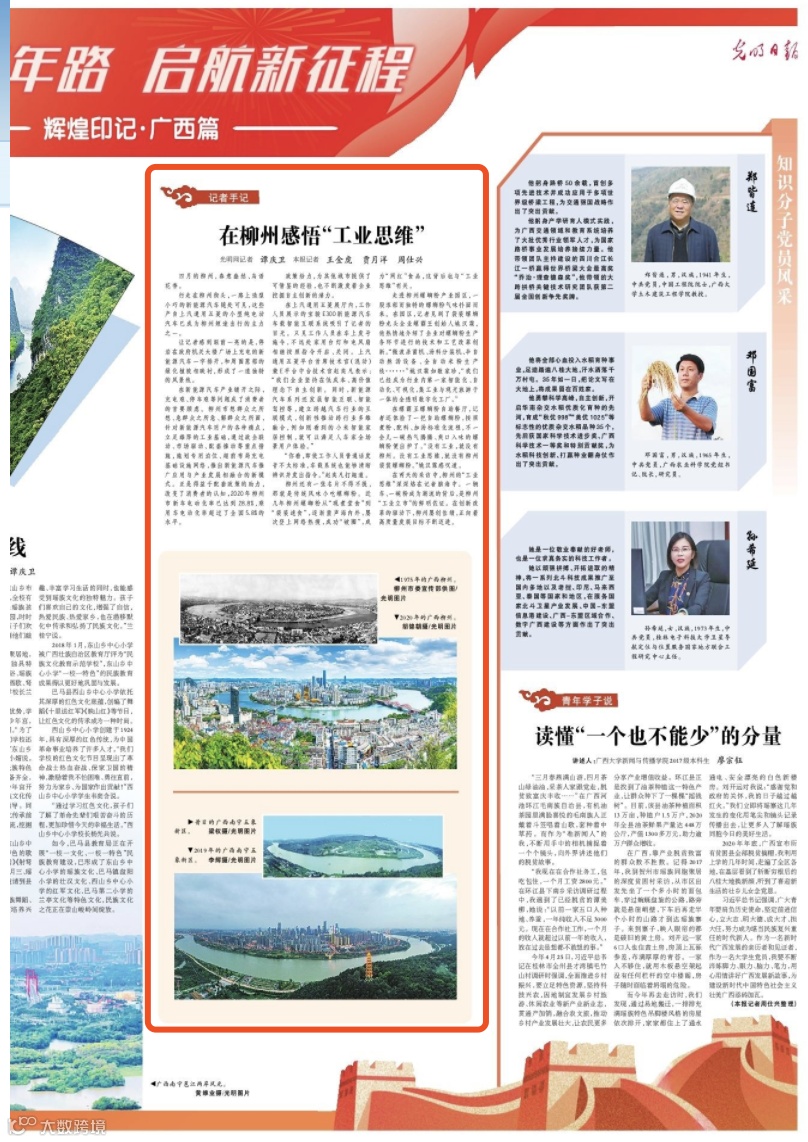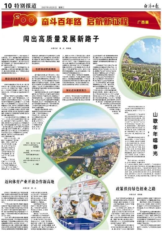 5月26日,《人民日报》《光明日报》《经济日报》在“奋斗百年路 启航新征程”栏目用多个版报道广西,其中多篇报道关注柳州。