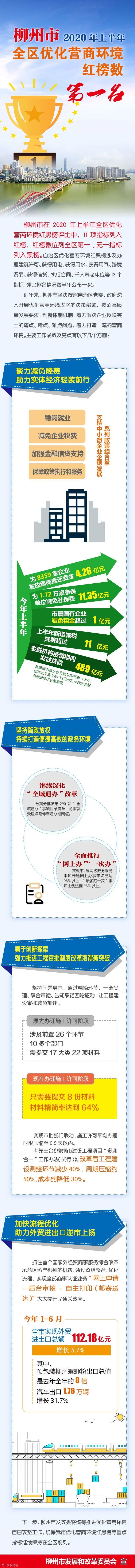 柳州市获得2020年上半年全区营商环境红榜数第一名