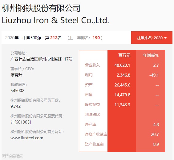 此外,自2010年至今,柳州钢铁股份有限公司已11年登上《财富》中国500强排行榜,而广西柳工机械股份有限公司连续2年上榜,此前曾于2010年至2015年连续六次登榜。