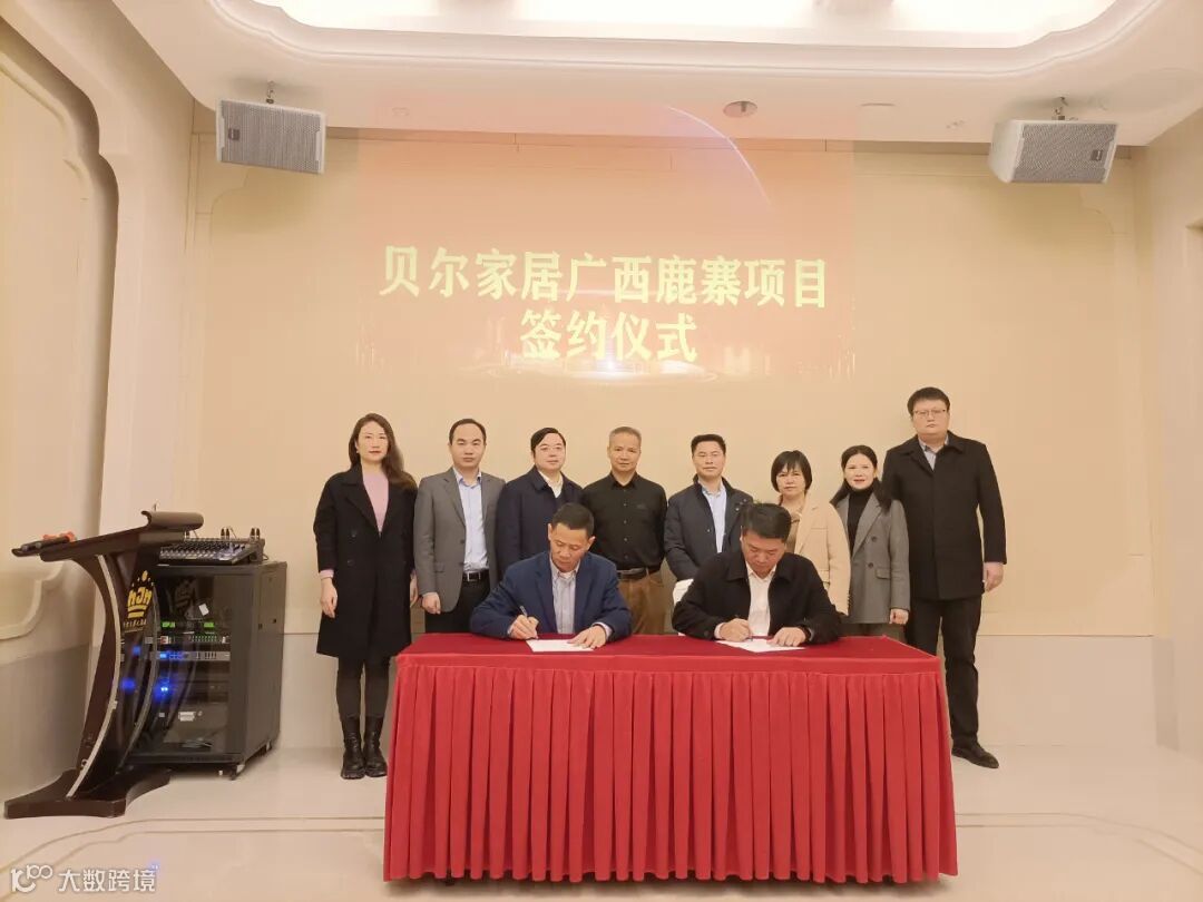 3月12日,鹿寨县人民政府与江苏贝尔家居科技有限公司签约仪式在江苏常州举行。鹿寨县委副书记、县长杨毅,鹿寨县人大常委会副主任莫兆坚,副县长李伟明,县政协副主席谭梅,中国木材与木制品流通协会秘书长郉小波,驰普·广西中心副总裁陶玉鸣出席并见证仪式。
