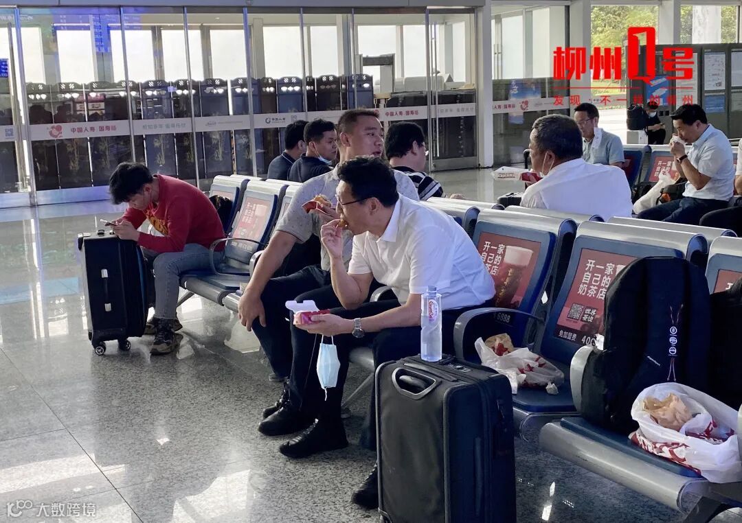 每人一份快餐就是他们在高铁站候车室的晚餐,