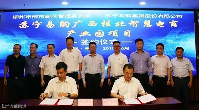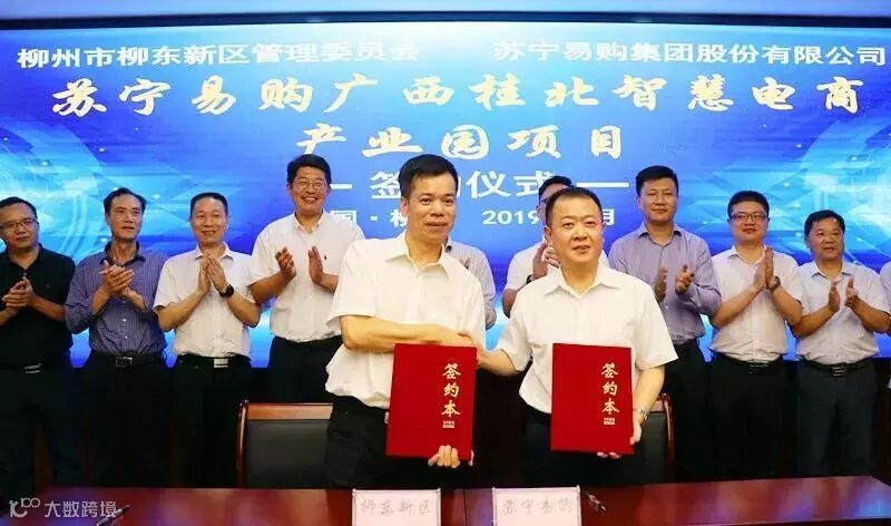 6月26日,苏宁易购广西桂北智慧电商产业园项目在柳东新区签约。在市委副书记、柳东新区党工委书记梁旭辉,市委常委、副市长郝兴国见证下,苏宁物流集团副总裁王长林与柳东新区管委会主任何培俊签订《项目投资协议书》。新区领导刘度量、陈需勤出席签约仪式。