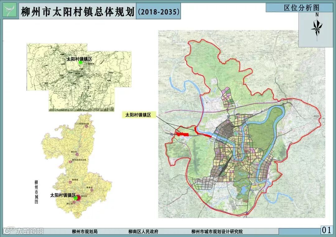 太阳村镇位于柳州市西郊,黔桂铁路、柳太路、宜柳、三柳高速公路出入口汇集镇区, 素有柳州“西大门”之称,距市中心15公里。该规划范围以太阳村镇边界为基础,包括太阳村镇所辖的全部村庄及太阳村镇镇区范围,总面积约为121平方公里。