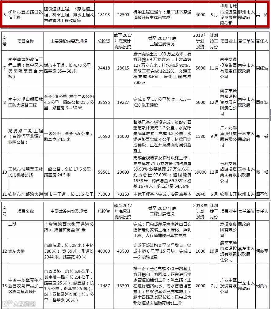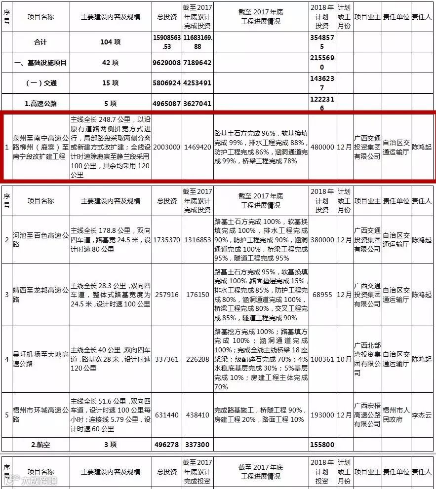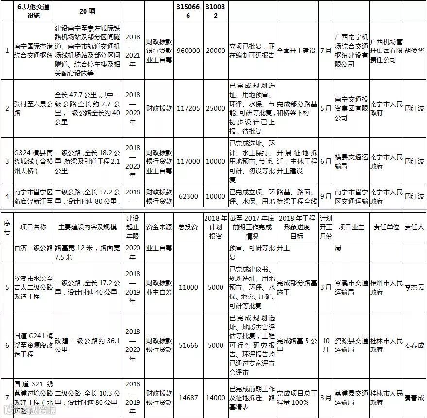 2018广西重大项目推进名单请点击