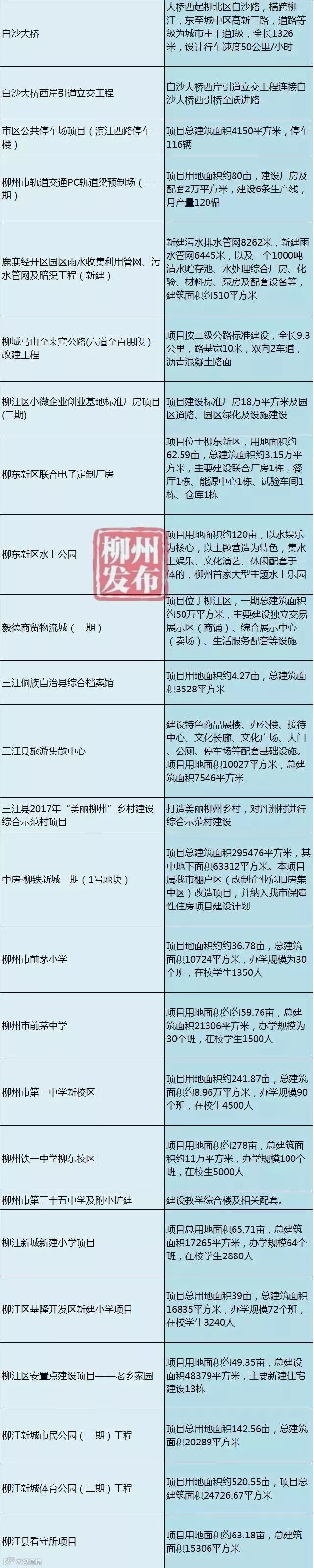 竣工的重大项目有白沙大桥、柳东新区联合电子定制厂房和水上公园、毅德商贸物流城(一期)、柳州市铁一中学柳东校区、市第一中学新校区。
