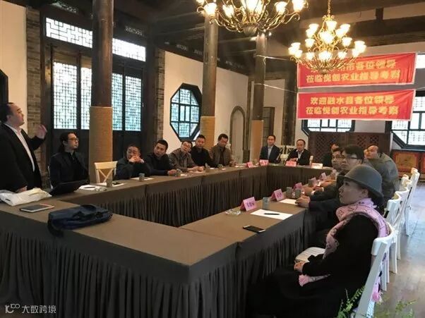 陕西悦创农业科技有限公司CEO潘龙在座谈会上向融水考察团介绍项目设计提案
