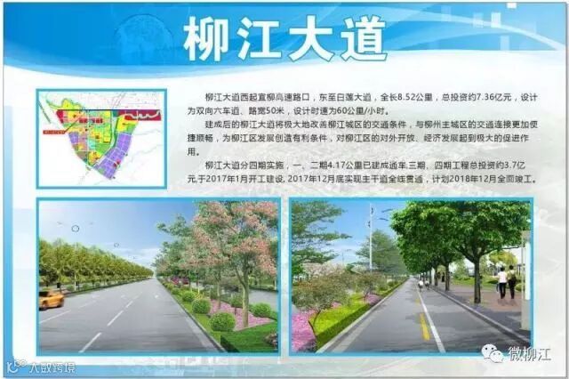 据悉,柳江大道西起宜柳高速路口,东至白莲大道,全长8.52公里,设计为双向六车道,路宽50米,设计时速为60公里/每小时。柳江大道的建设,是破解城区交通拥堵问题、加快新型城镇化建设、拓展城区规模的重要举措,也是推动柳江区经济社会发展、造福柳江区人民的民生工程。柳江大道的通车标志着柳江区拓展城市框架又迈出了坚实的一步。