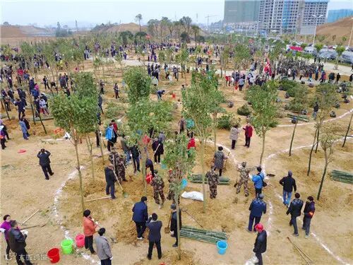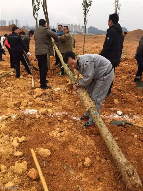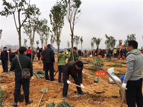 每栽下一棵树苗,大家都认认真真地扶正、浇水、培土、踩实,劳动场面一派火热。在占地120亩的桂中街心公园,当天新春团拜植树共同种下2500株本地木棉、黄花风铃木、八月桂、洋紫荆、蓝花楹、愰伞枫等树木,播种下春的希望。