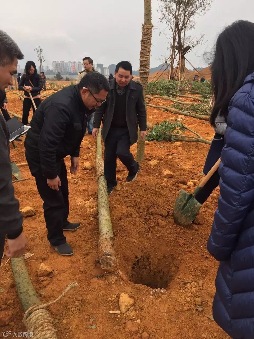 2月3日上午,在桂中大道延长线的街心花园,柳州市投资促进局全局干部职工共20多人挖坑、培土、浇水……到处都是一片繁忙的景象。