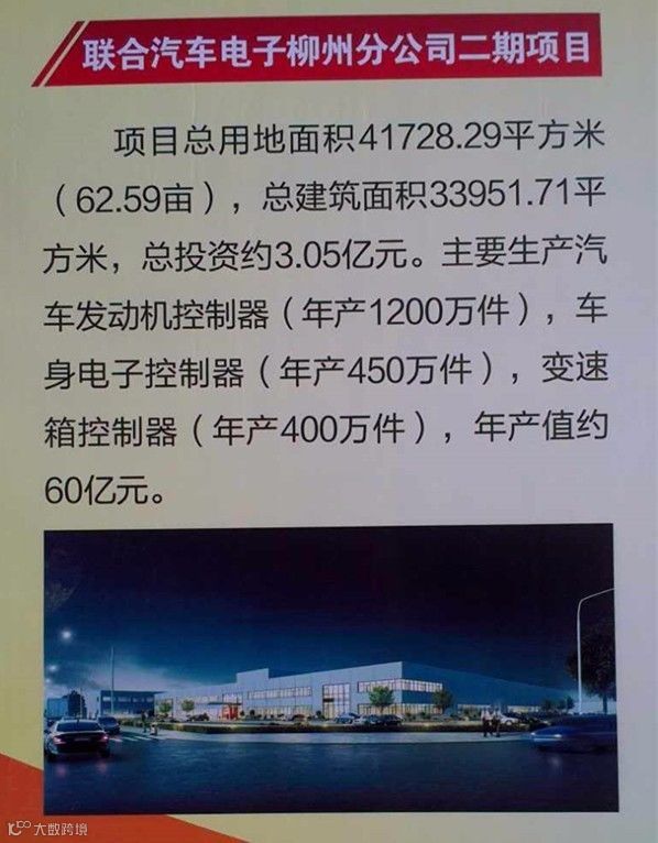 联合汽车电子二期工程为开工主项目,该项目总投资约3.05亿元,年产值约60亿元。