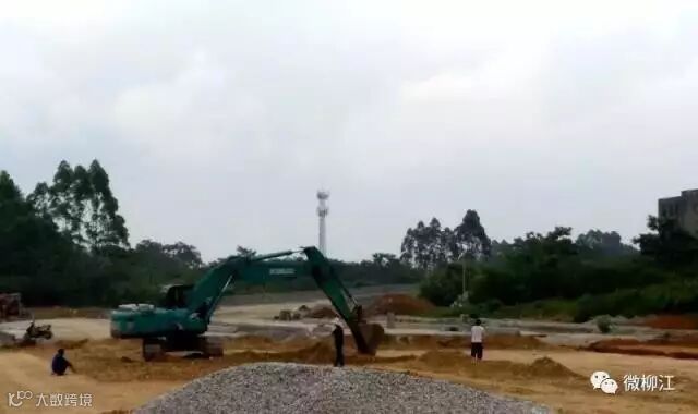 项目正在进行九曲河以南至柳江大道段约600米路基换填土方开挖施工,柳江大道往南至高村回建房段完成300米边沟开挖。