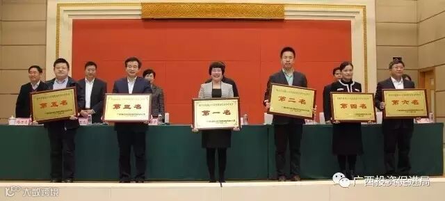 黄文标书记通报了2016年度招商引资专项考评情况,其中南宁、柳州、桂林、贵港、梧州、贺州六市分别获得2016年度招商引资专项考评第一至第六名的成绩。