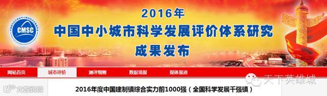其中公布了“2016全国综合实力千强镇”榜单