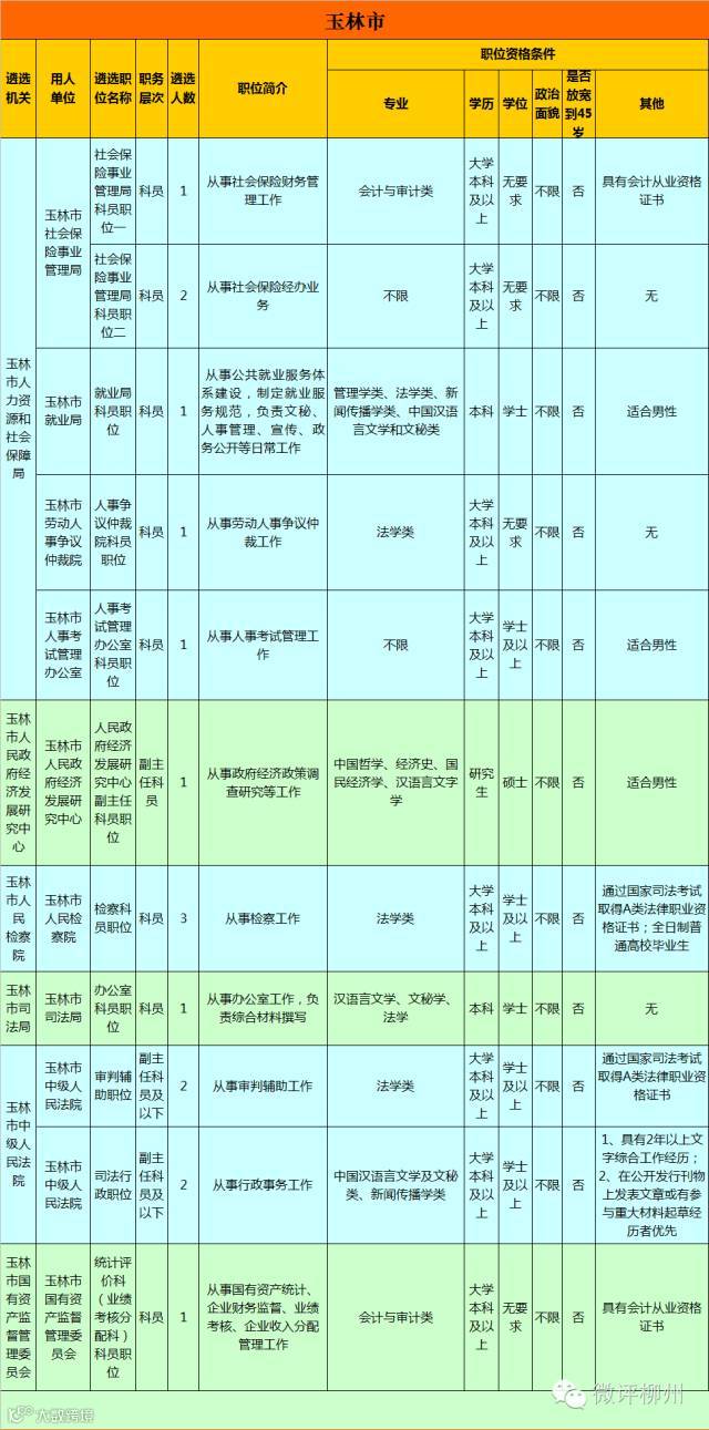 一、具体职位如下表: