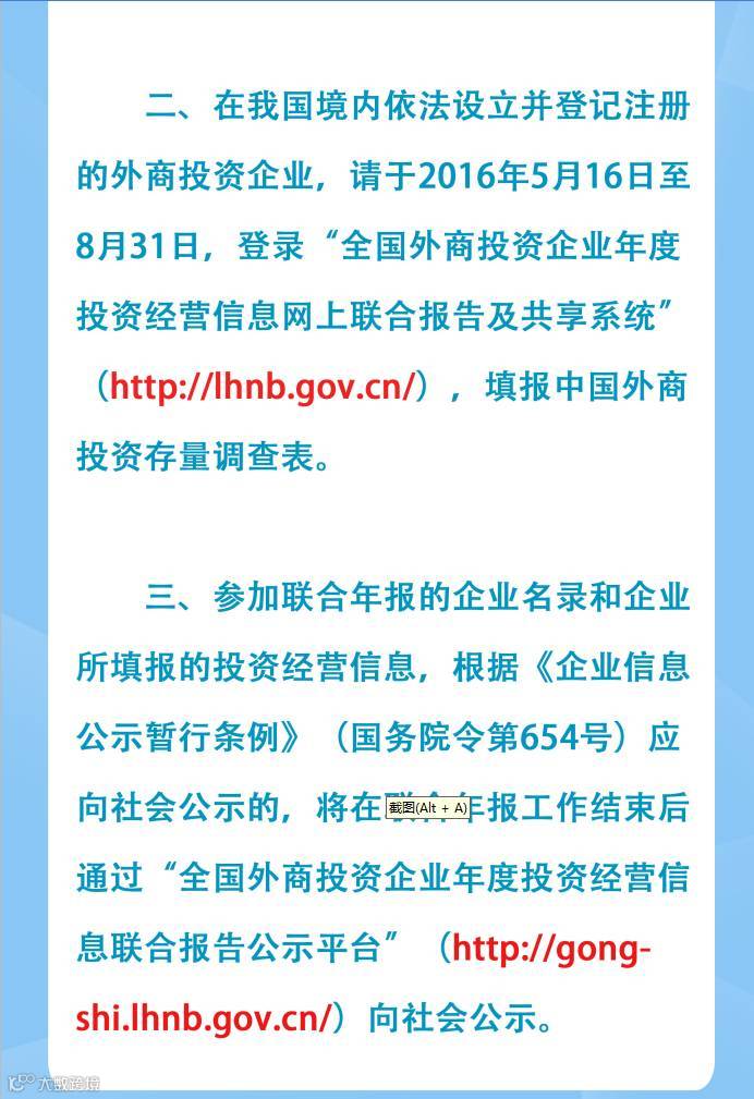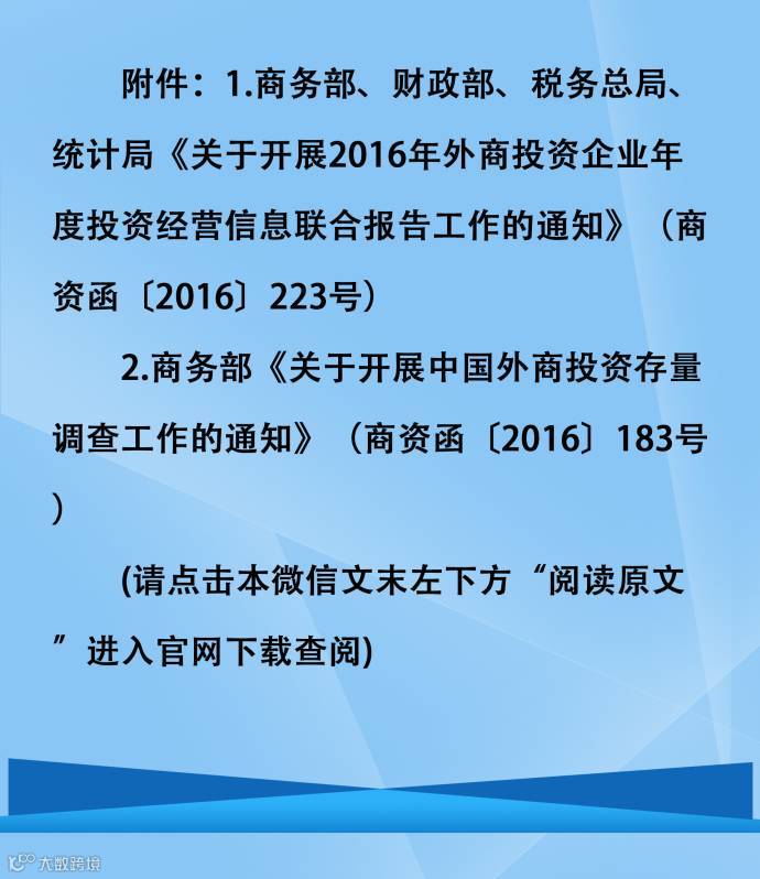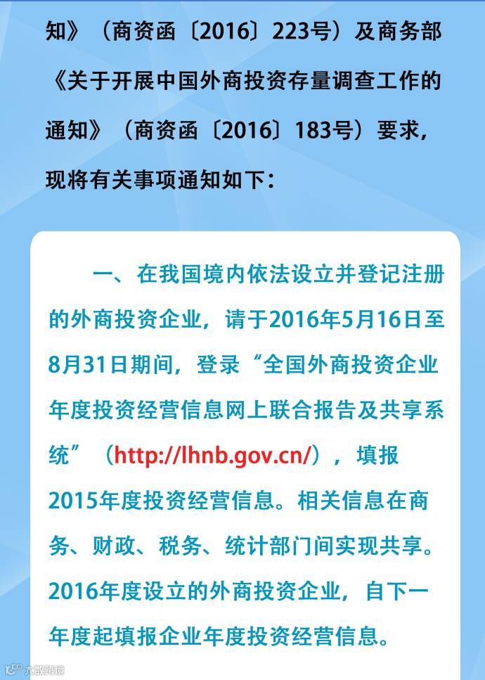 【长图通知】关于开展2016年外商投资企业年度投资经营信息 联合报告及外商投资存量调查工作的通知