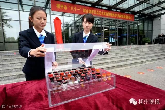 16日上午8:30时,柳州市行政审批局于正式挂牌成立,将发改、工信、住建、教育、民政、人社、交通、卫计、农业、 林业等35个政府工作部门和事业单位承担的220项行政许可事项及部分审批业务人员划转至审批局,通过审批事项、审批职能、审批人员向审批局“三集中”,由一枚行政审批专用章代替原35个部门的82枚审批印章,实现了“一枚印章管审批,一站式办理业务”。