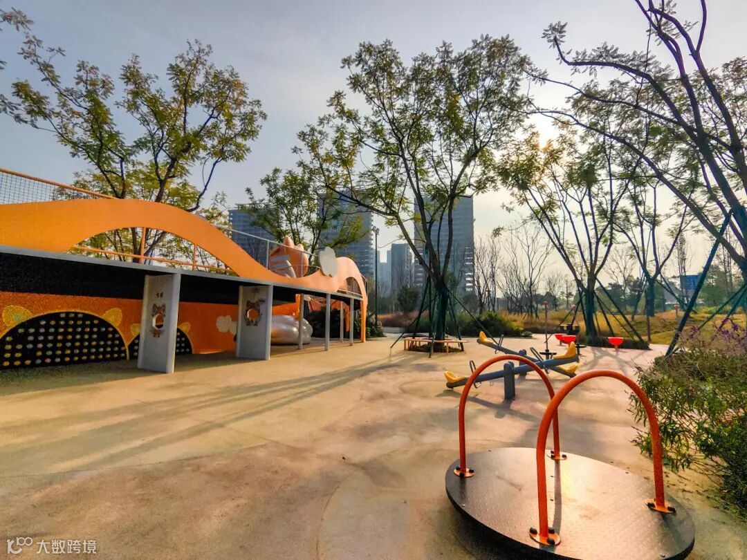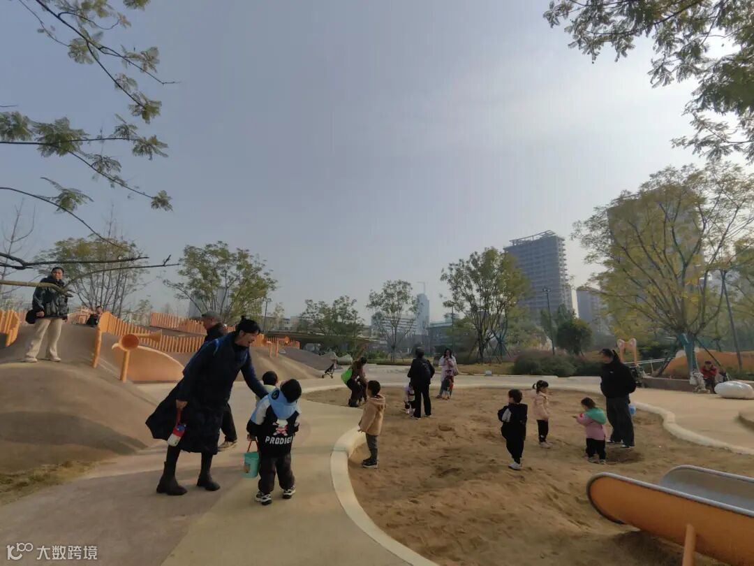 亲子家庭在这里也能找到专属的乐趣。占地约1800平方米的“天虎乐园”根据不同年龄段儿童的需求进行分区设计,并贴心设置了多处家长看护区。乐园以蓝花楹为特色树种,营造出清新活泼的氛围。与之相邻的,是一片约4200平方米的开放式阳光草坪。“这个公园对我们带孩子的家庭太友好了,孩子玩得安全尽兴,我们大人也能在草坪上休息、野餐,周末几乎全家人都会过来。”带着孩子游玩的李女士满意地表示。