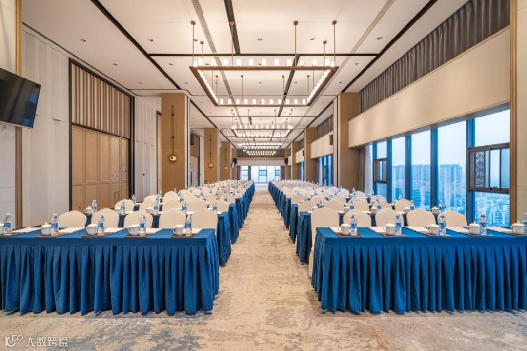 此外,酒店总计拥有逾1600平米的会议宴会空间,于3楼的宴会厅配有8个规格不同的多功能厅,其中至尊宴会厅,总面积720平米,挑高8.3米,开阔敞亮,搭载103平米的超大LED屏幕,带来震撼视觉体验,画面清晰,色彩绚丽,同时更配备有270°环绕沉浸式投影技术,营造出身临其境的氛围感,不管是浪漫的婚礼,还是盛大的商务论坛,都能适配。